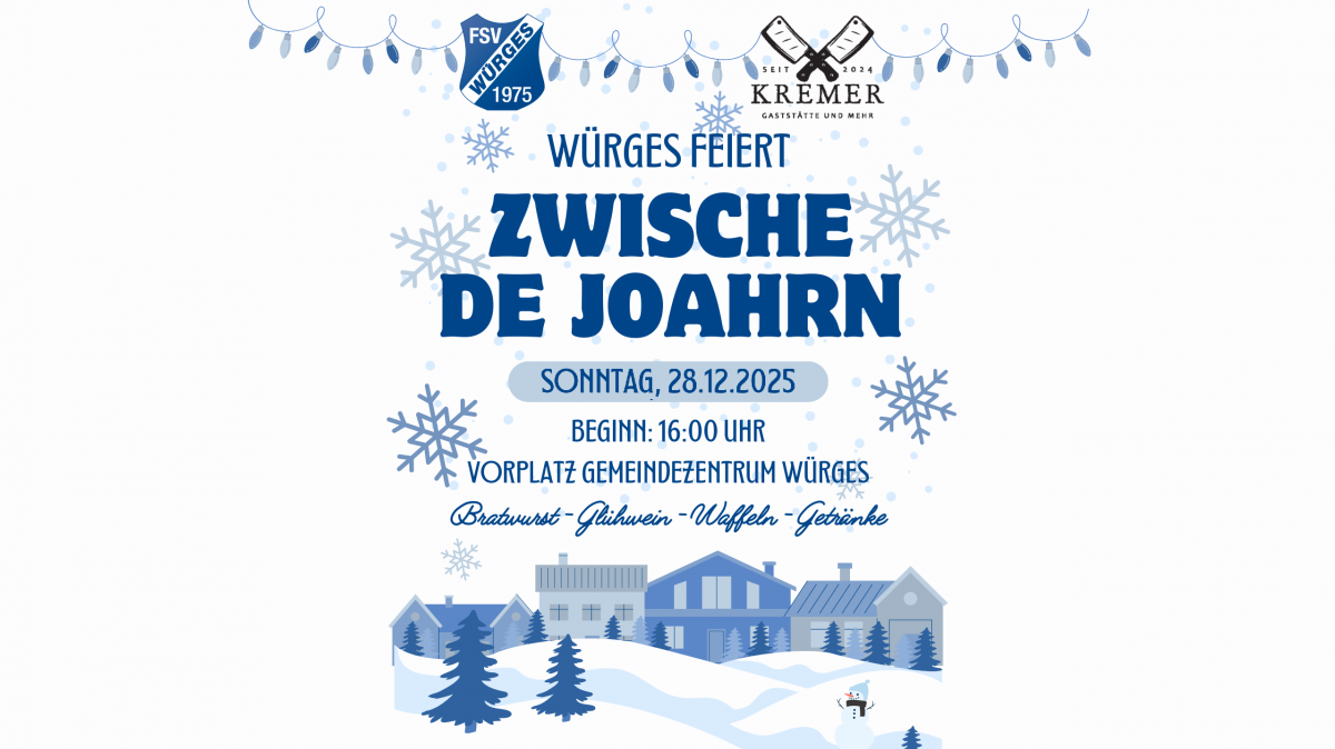 Am 28. Dezember 2025 ab 16 Uhr laden wir euch herzlich zu unserer beliebten Veranstaltung ZWISCHE DE JOAHRN ein. Nach den großen Erfolgen in den beiden vergangenen Jahren verwandeln wir den Vorplatz des Würgeser Gemeindezentrums erneut in einen festlichen Treffpunkt.