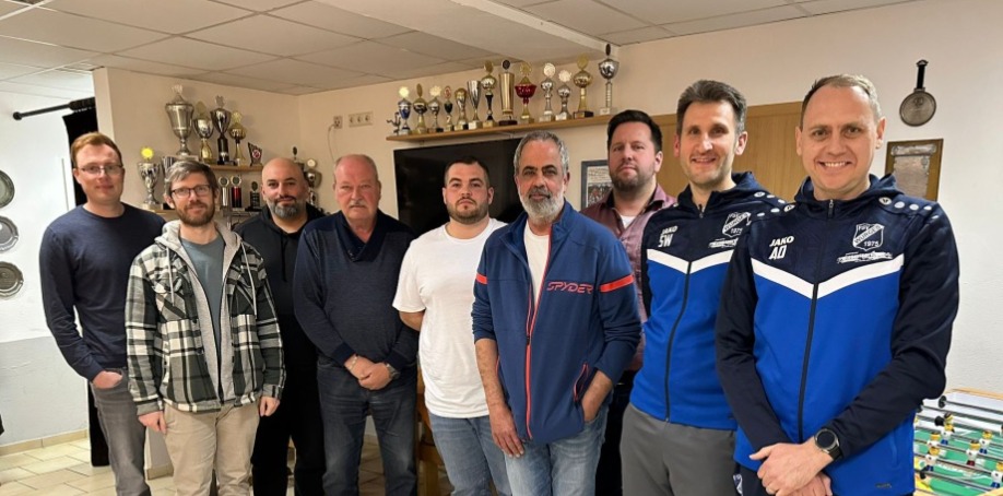 vlnr.: 1. Schriftführer Benjamin Maurer, 2. Kassierer Christoph Jedmowski, 2. Vorsitzender Sercan Cinar, 1. Vorsitzender Ralf Altena, Spielausschussvorsitzender Rene Weller, 1. Kassierer Jochen Hartmann, Wirtschaftsausschussvorsitzender Michael Ferfers, Pressewart Sebastian Wagner, 2. Schriftführer Alexander Ochs